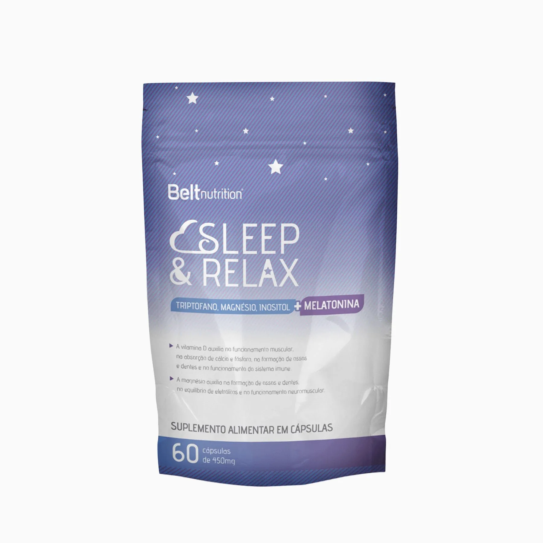 Melatonina - Belt Sleep and Relax - BELT NUTRITION Sua fórmula exclusiva combina l-triptofano, magnésio, inositol e melatonina, atuando de forma integrada para regular o ciclo do sono e auxiliar no relaxamento físico e mental. Principais ingredientes L-triptofano: precursor da serotonina, auxilia na redução de sintomas de tristeza, ansiedade e alteração do sono. Melatonina: regula o ciclo circadiano, promove um sono mais profundo e atua como antioxidante. Inositol: conhecido por reduzir os sintomas de depressão e proporcionar relaxamento. Magnésio: contribui para o relaxamento muscular e o equilíbrio do sistema nervoso.
